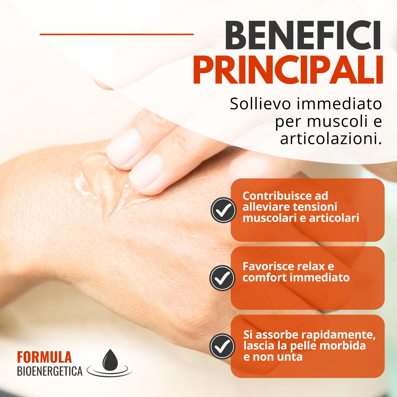 Sollievo immediato e naturale per muscoli e articolazioni. Gel dermocosmetico olistico con principi attivi vegetali e tecnologia quantica innovativa.